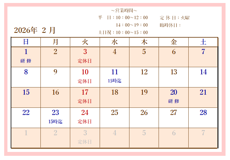 ご希望のメニューから選択していただきと予約ができる日時がわかりやすくなります。